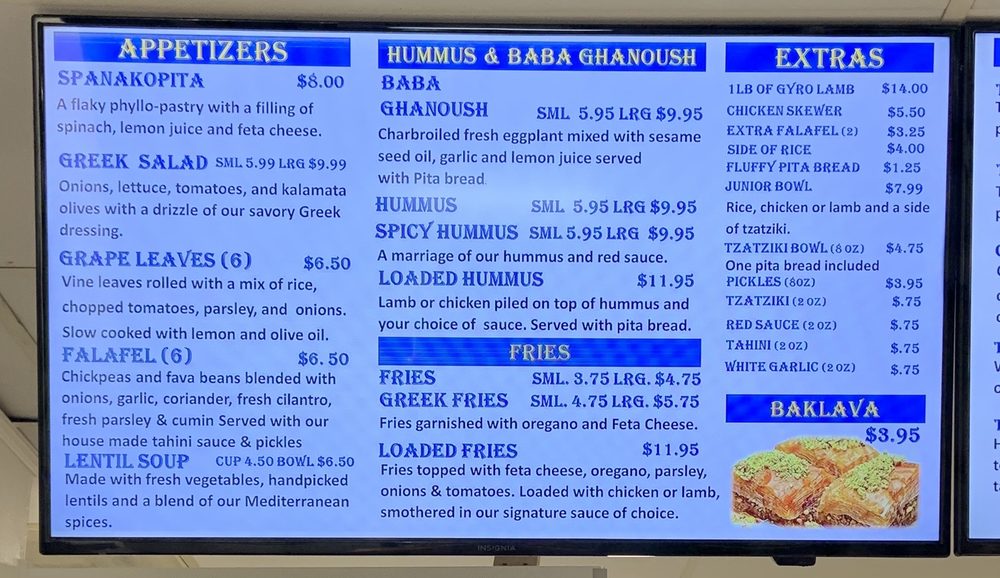 Our customer’s favorite. Fresh pita loaded up high with your Lamb topped with tzatziki, lettuce, tomatoes, onions and pickles.